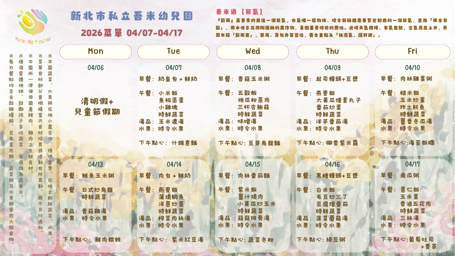 私立吾米幼兒園雙週菜單04/07-04/17, 2026